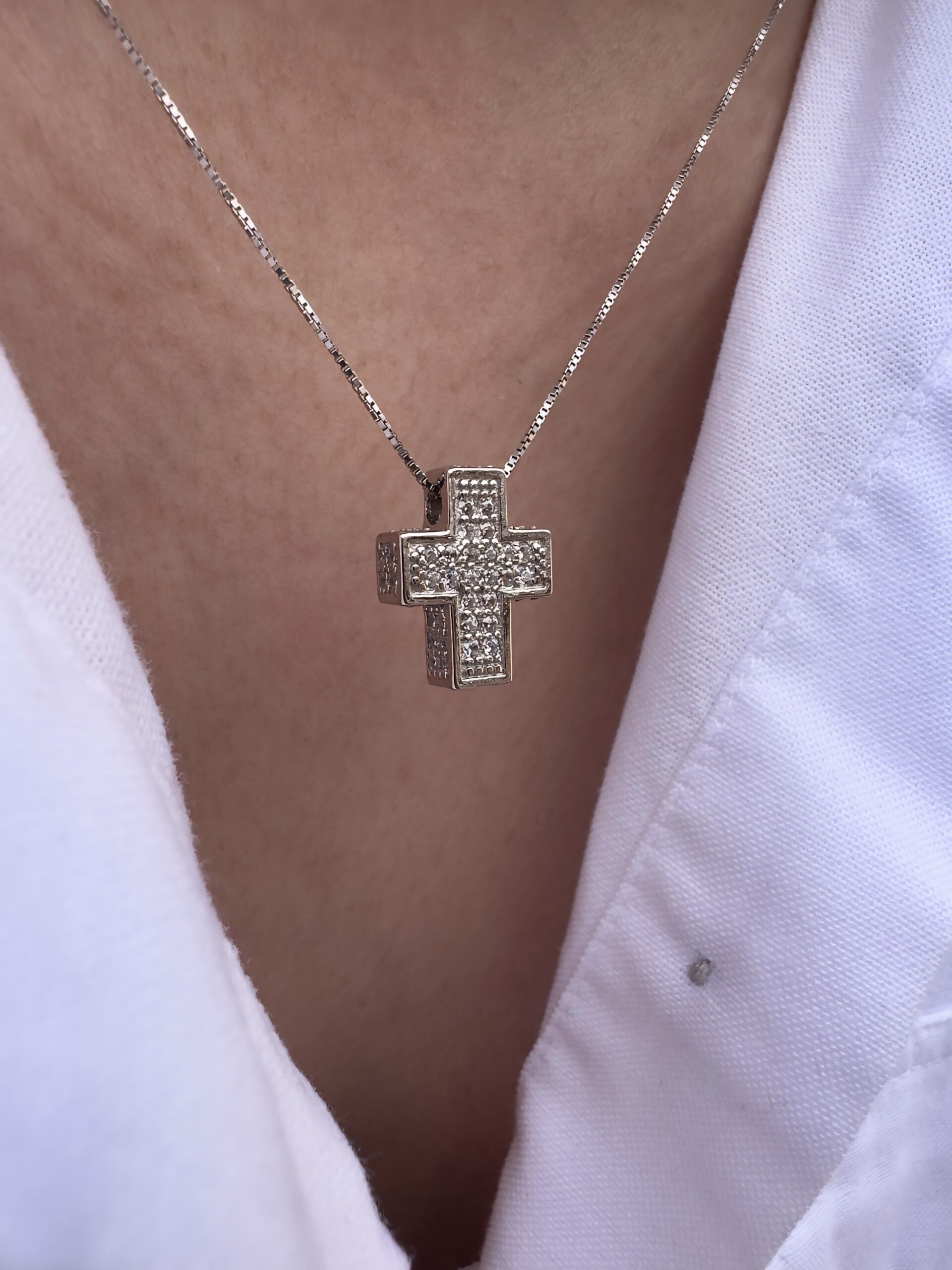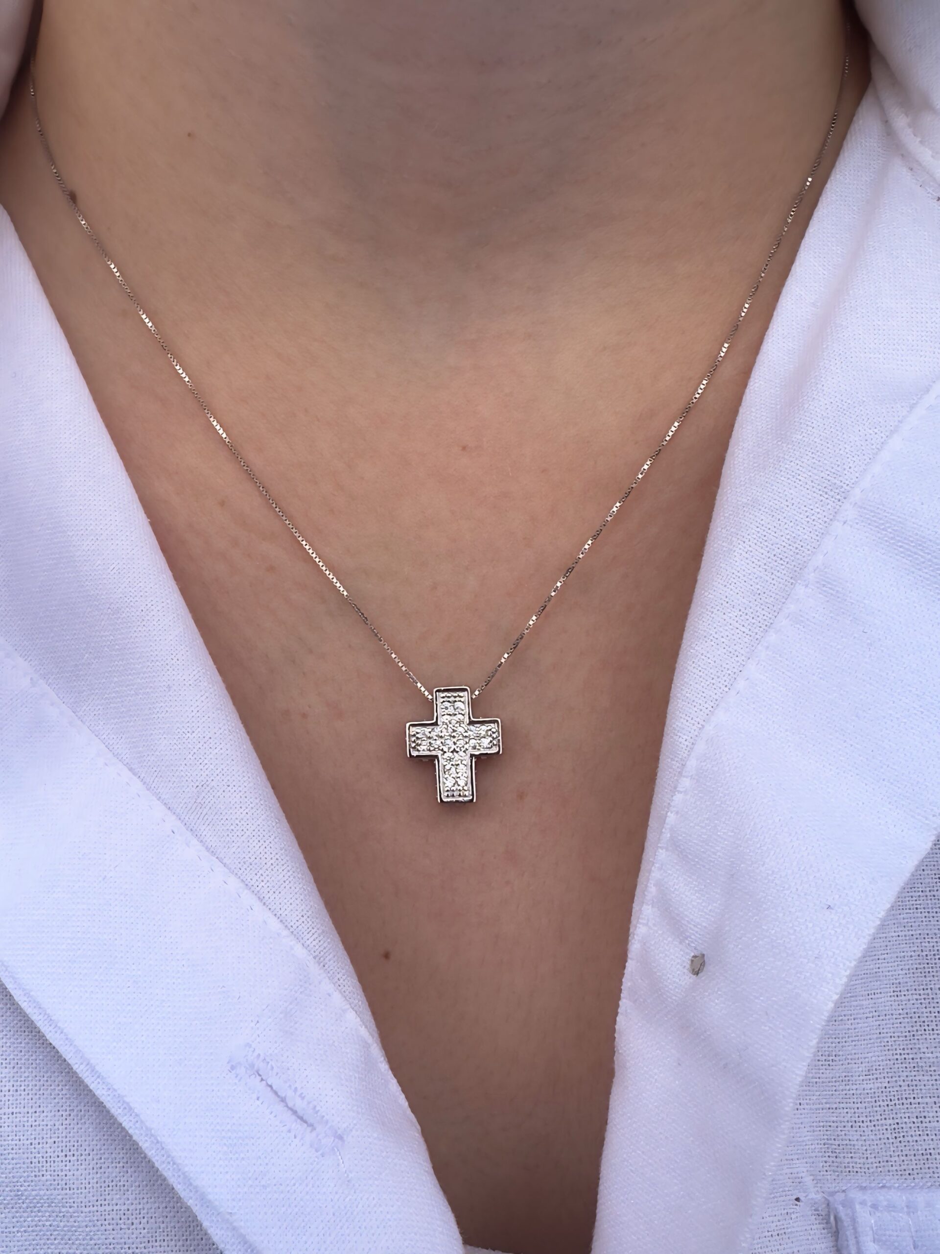 Con la sua lunghezza di 45 cm e un ciondolo di 2 cm, è la scelta perfetta per essere indossata ogni giorno o per impreziosire outfit eleganti. Grazie al suo design versatile e al simbolismo intramontabile della croce, è anche un’idea regalo speciale e significativa.