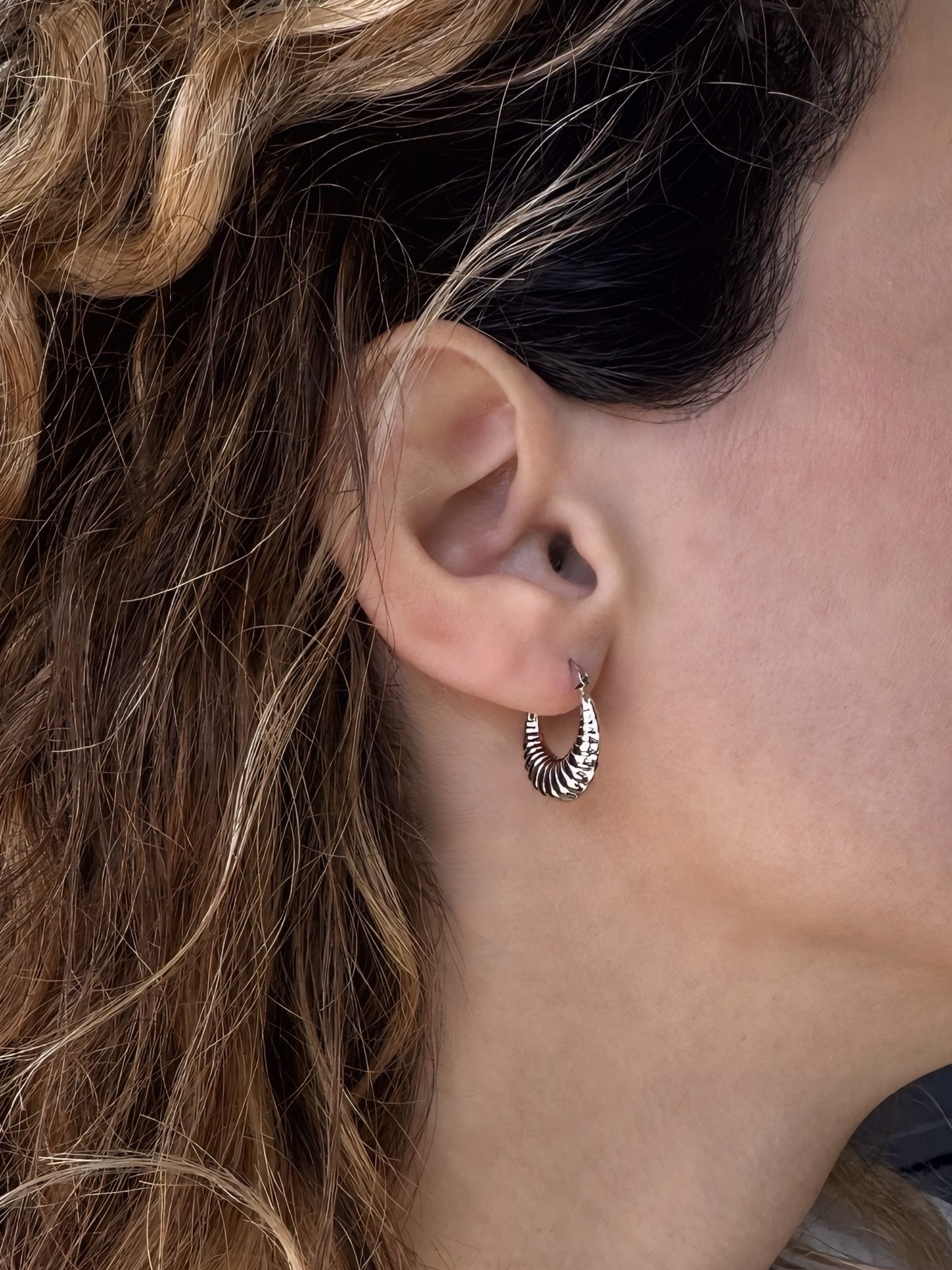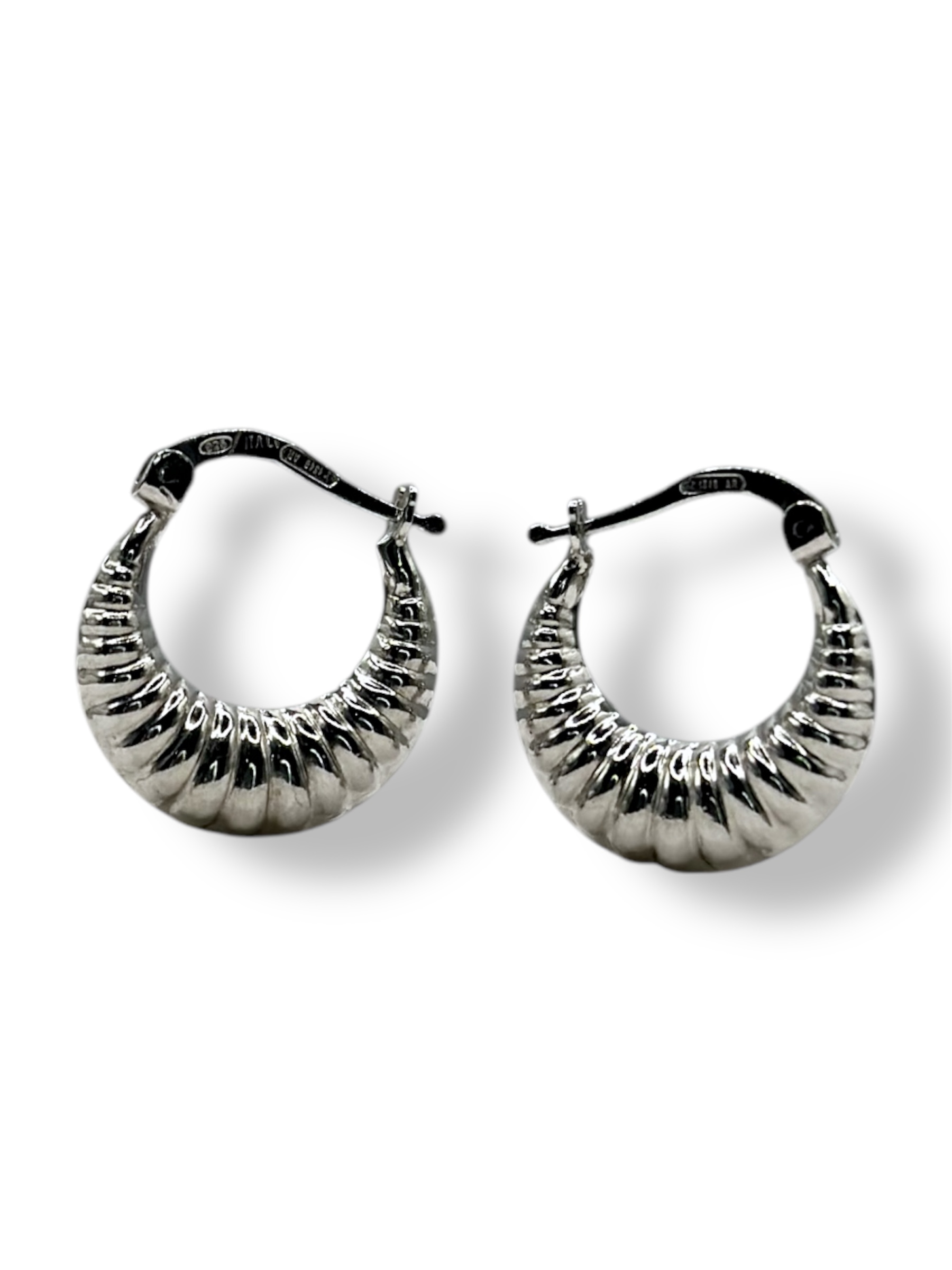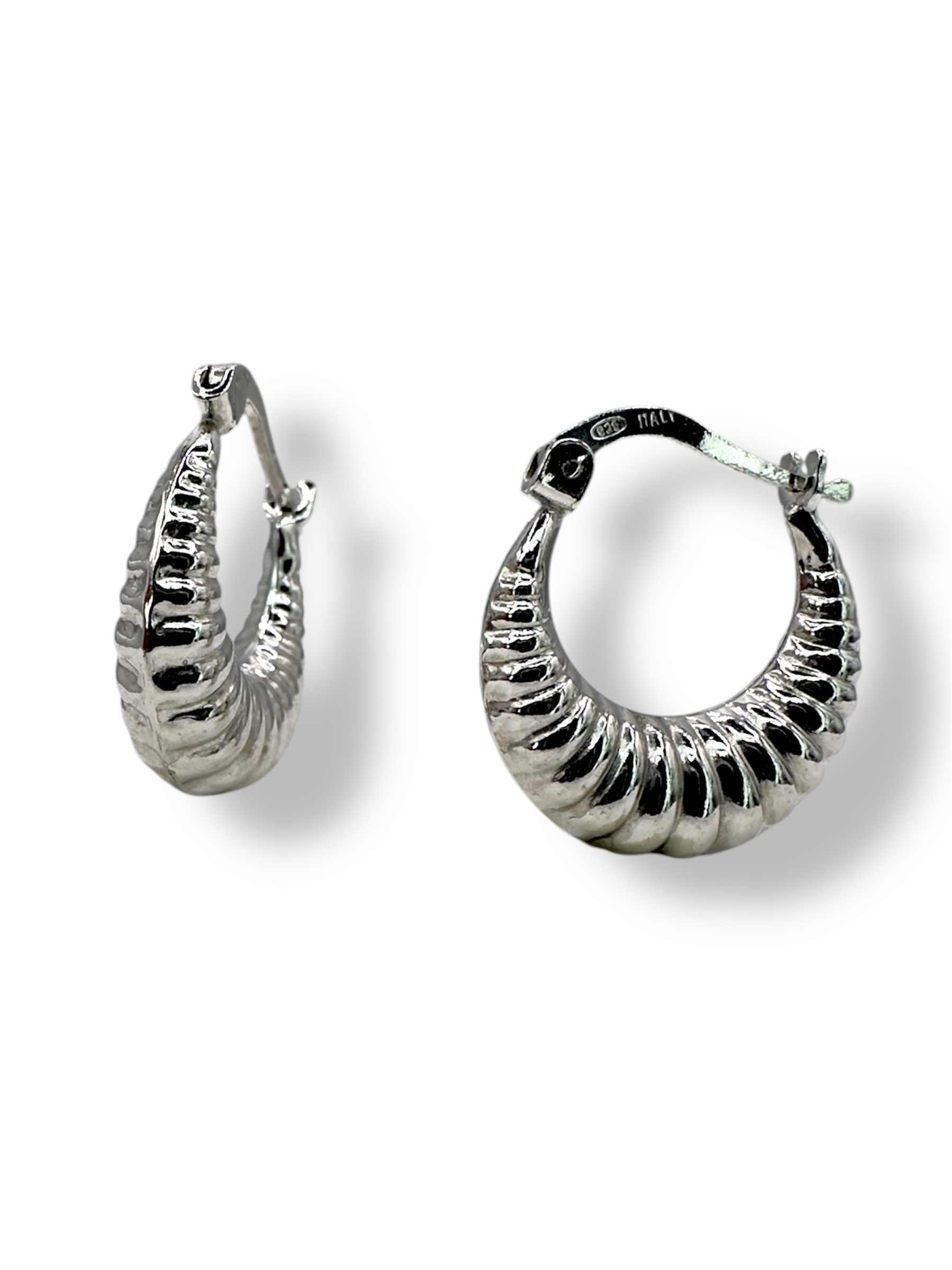 Gli Orecchini Conchiglia sono realizzati in argento 925 e si ispirano alle linee morbide e naturali del mare. Il design bombato ed a spirale richiama la forma delle conchiglie, riflettendo la luce con eleganza e regalando un tocco raffinato a ogni look.